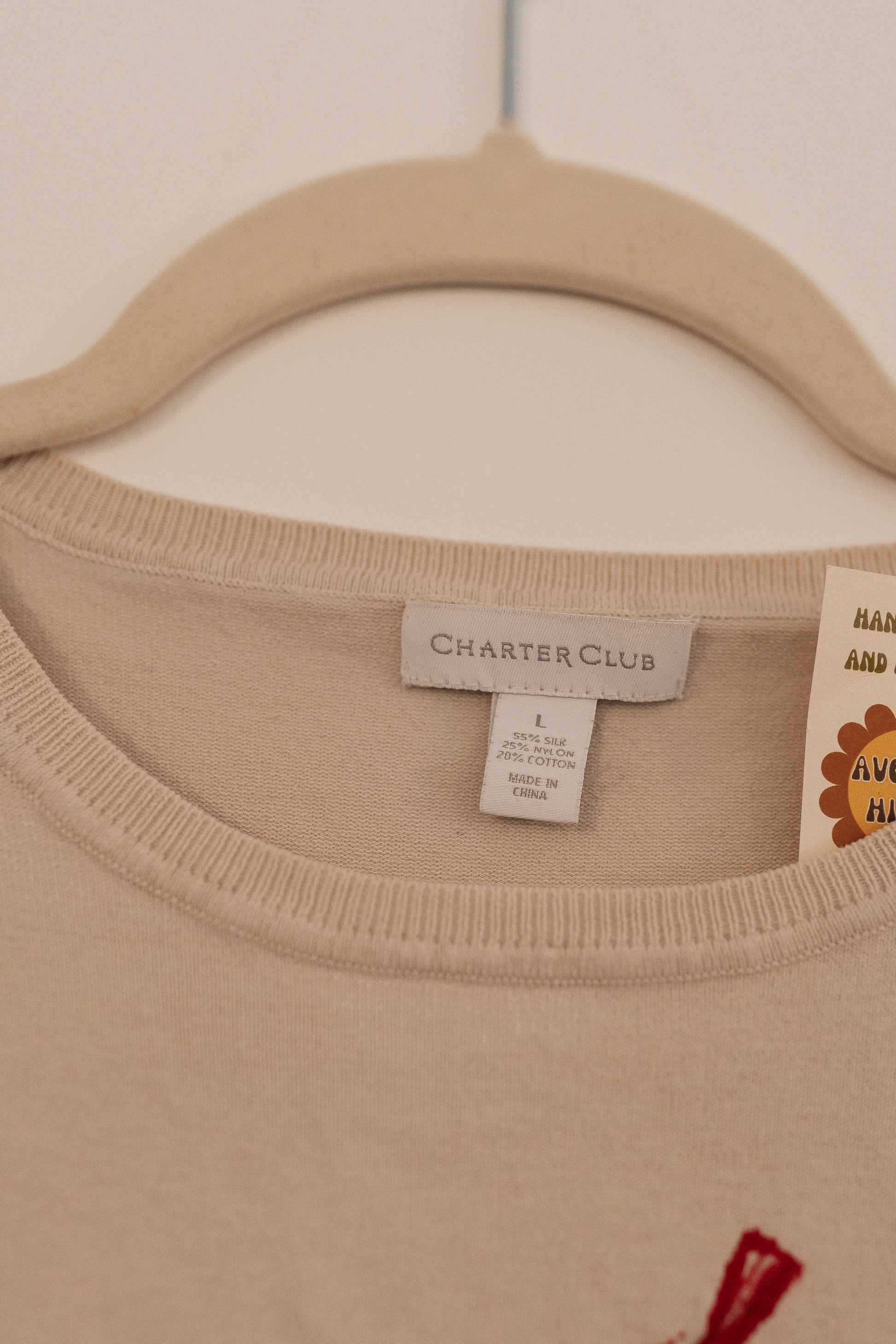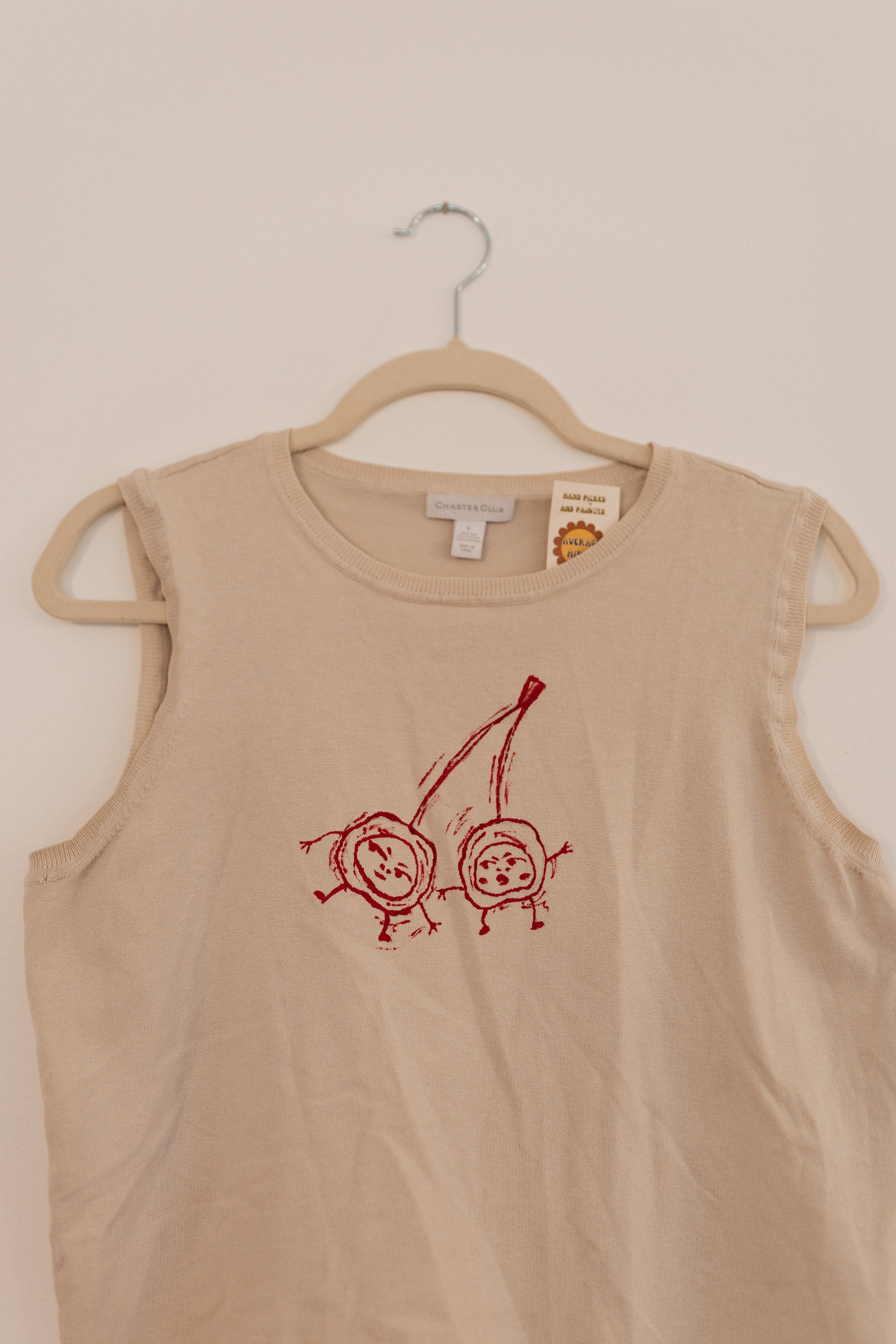 Cream knit tank with hand painted cherry designs on it. Machine washable!