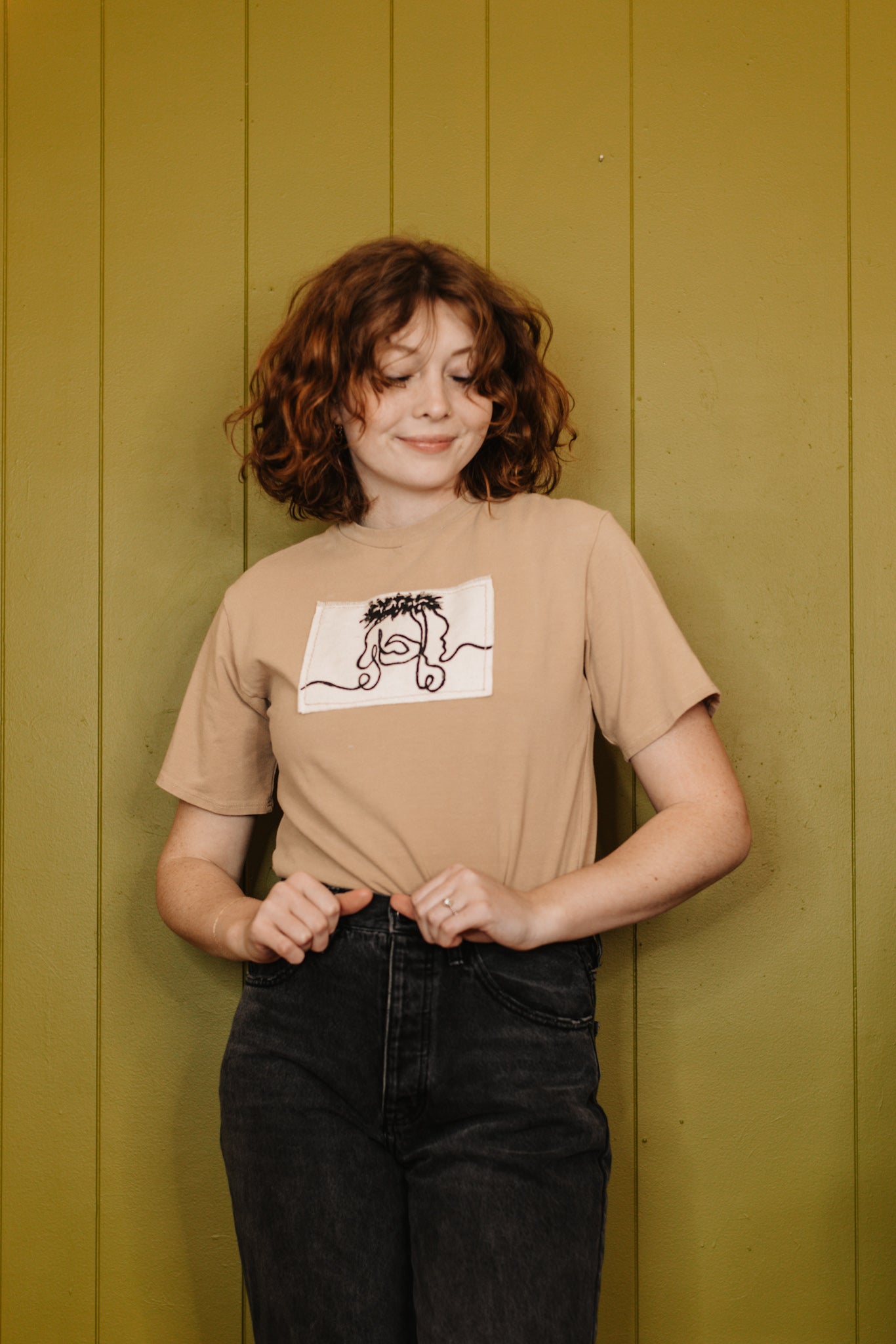 A Super soft tee that was thrifted patched and painted! A simple Jesus outline with the crown of thorns!