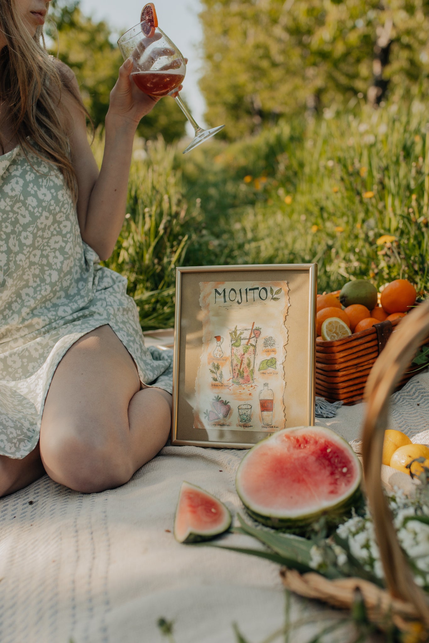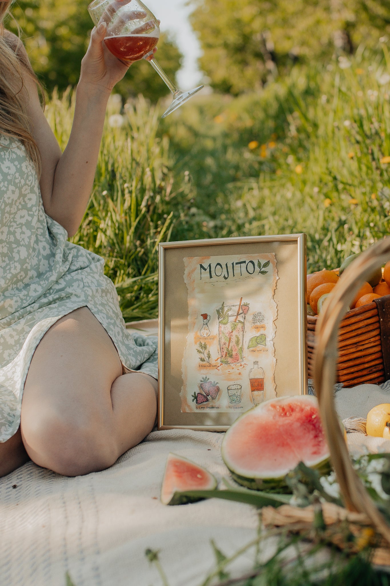 A hand drawn mojito recipe, that was put in a thrifted frame!