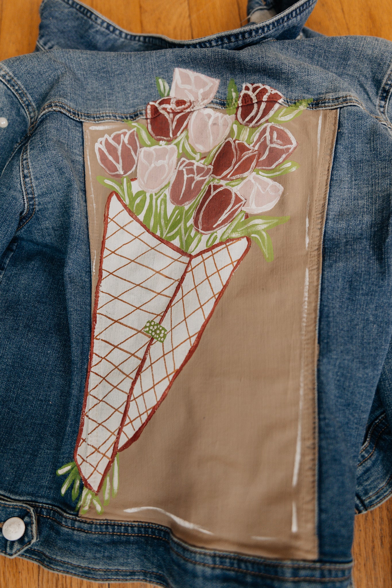 A bouquet that you can keep forever! This jacket was thrifted and has the cutest little pearls on the sleeves!