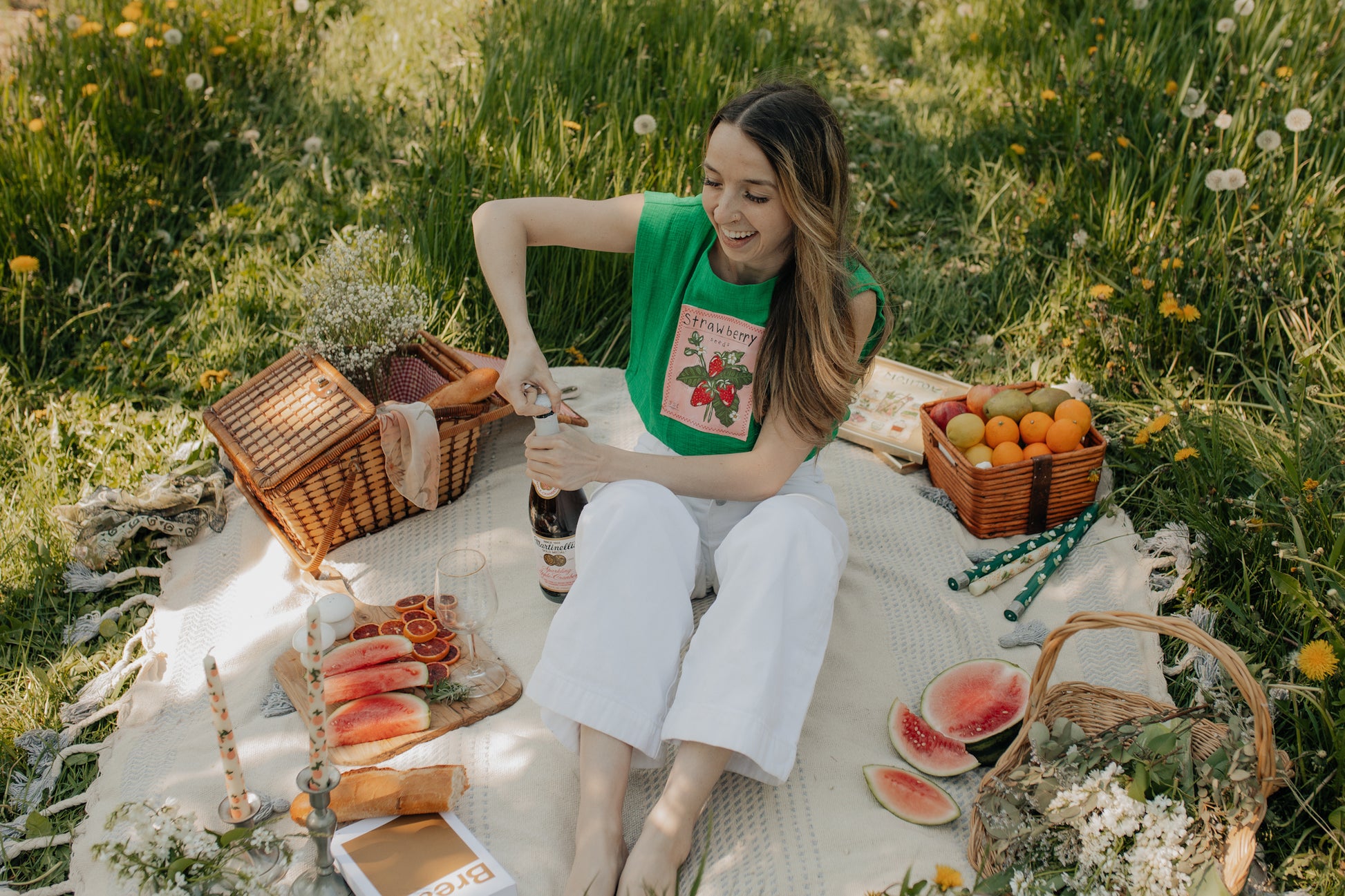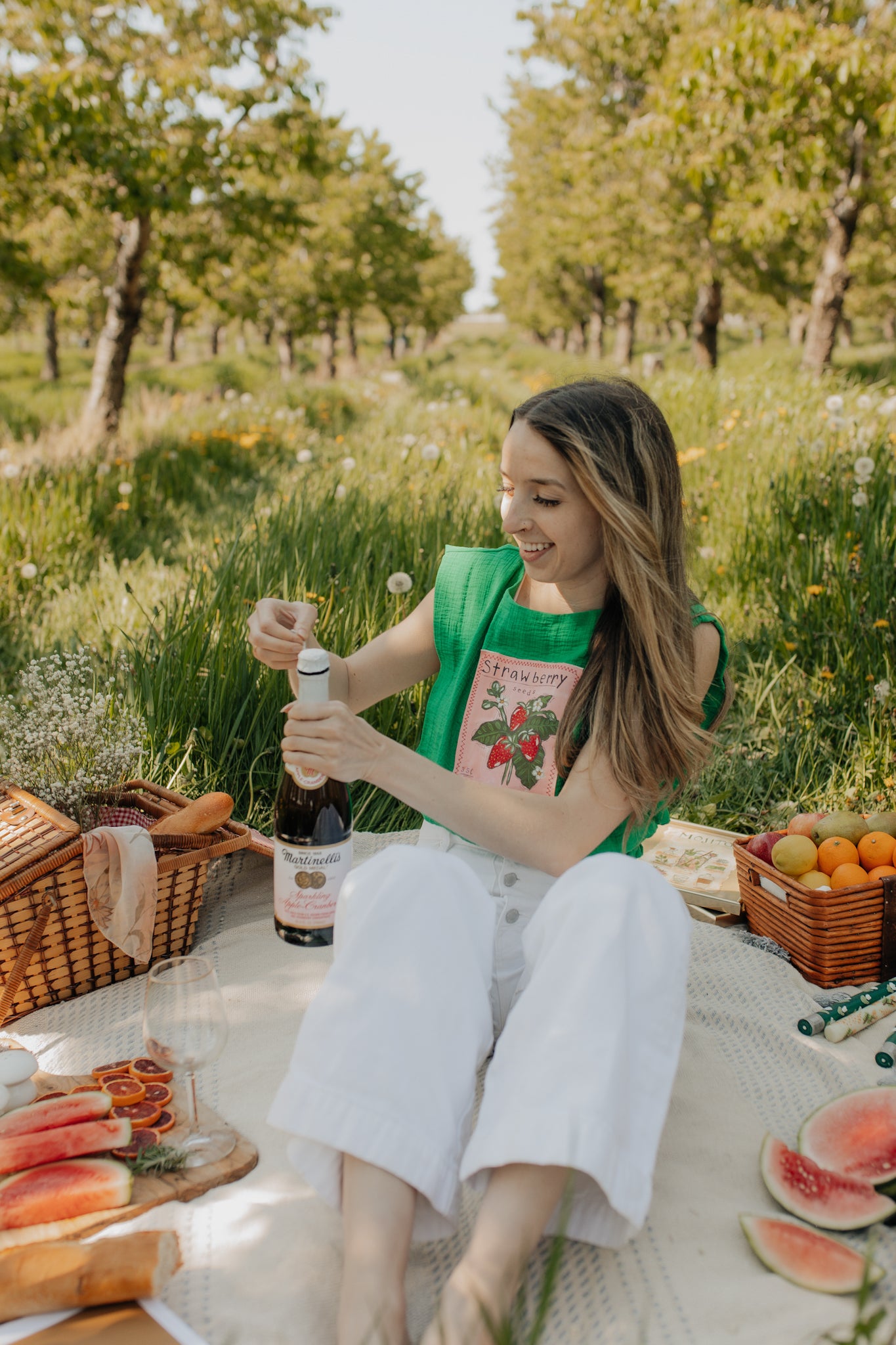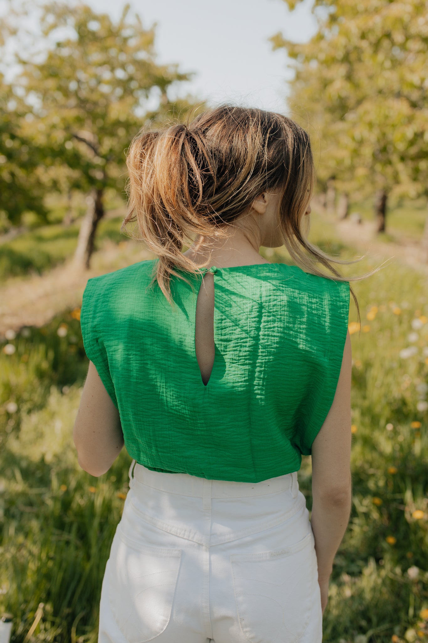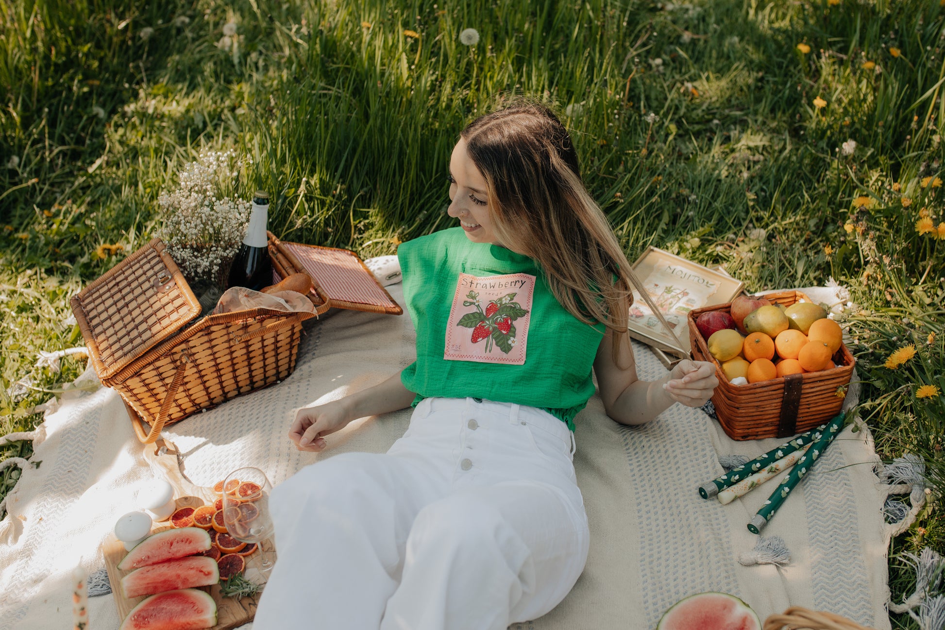 A fun twist on a normal tank by adding a painted patch of a strawberry seed packet! This piece was thrifted, painted, and patched!