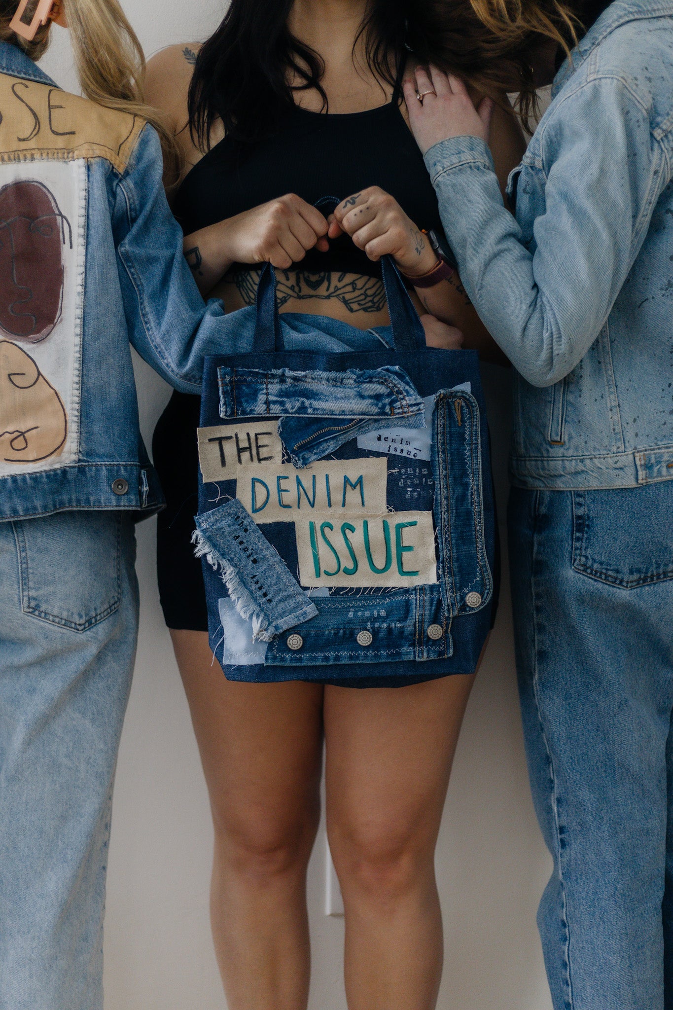 It’s Denim on Denim on more Denim with this bag! To create this piece I took old jean jackets and pants, cut them up and sewed them onto this jean bag. This item is specially made and one of a kind!