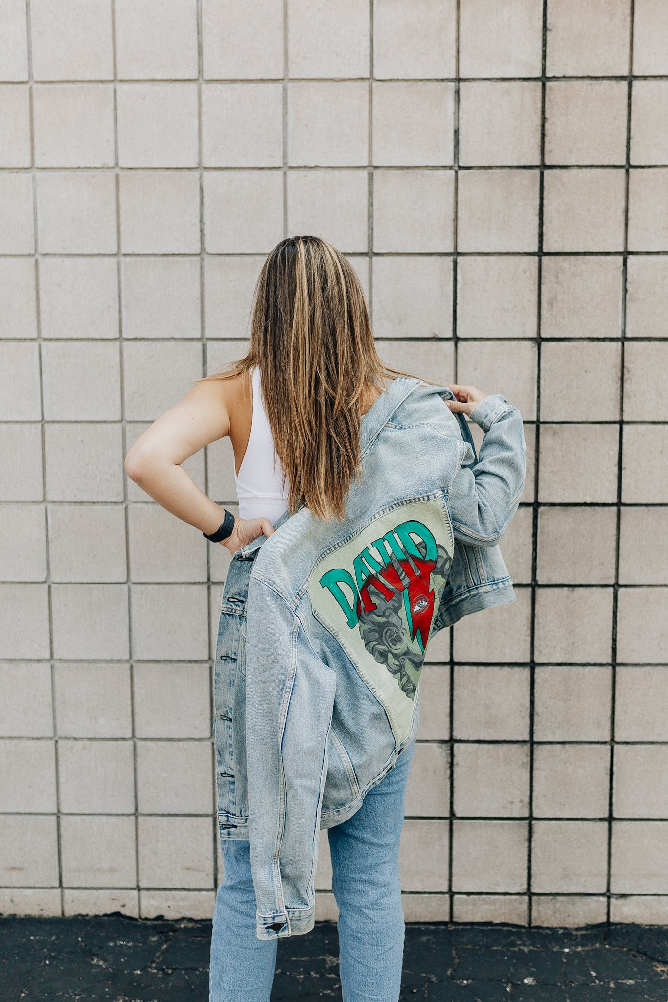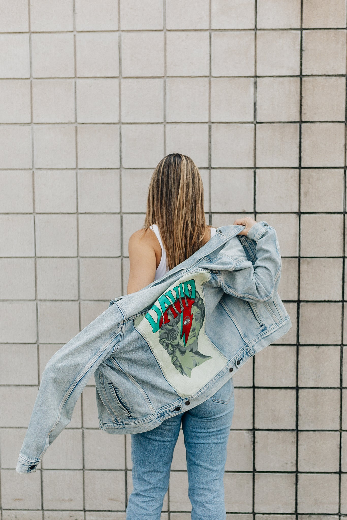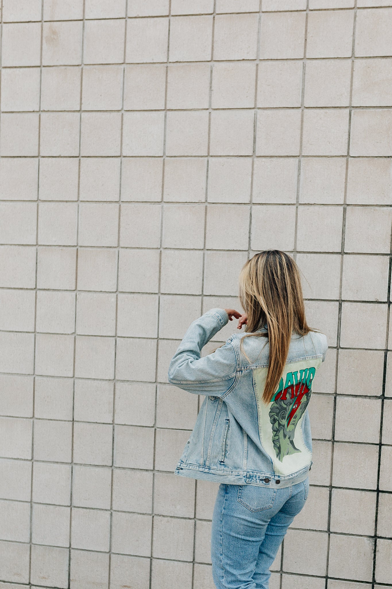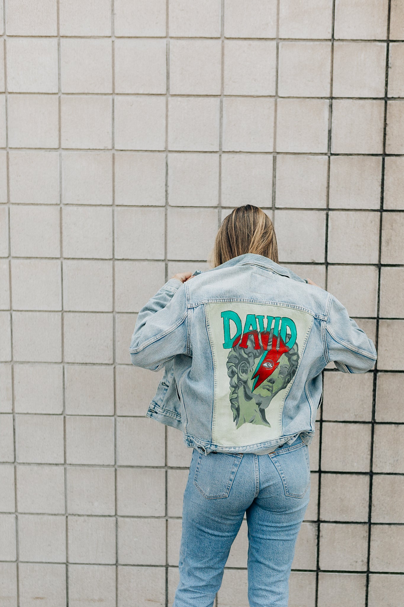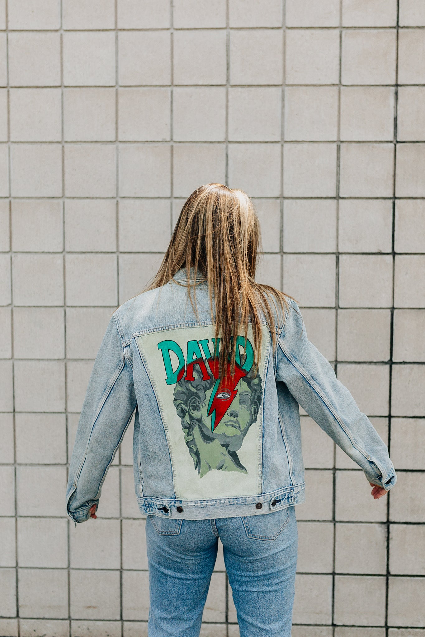 A jacket where David Bowie and The Statue Of David get to meet. This piece had lots of love and time poured into and is excited for a new owner!